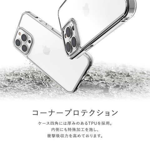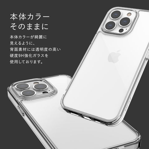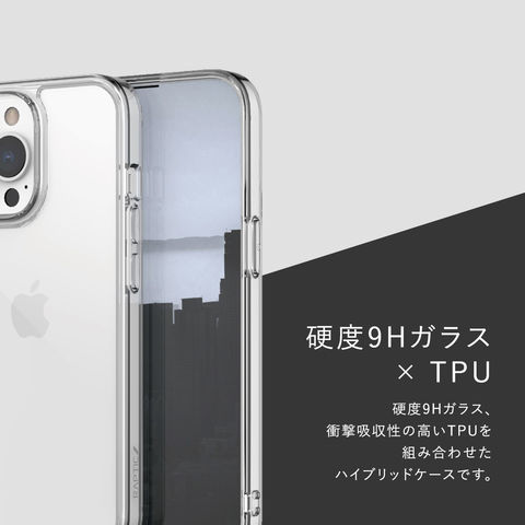 透明度の高い硬度9Hガラスと、衝撃吸収力に優れたTPU 、2種類の素材で構成されたケースは、デバイスの保護機能を持ちながらも、スリムなボディラインで設計しております。