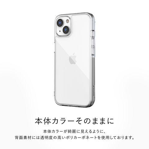 本体カラーが綺麗に見えるように、背面素材には透明度の高いポリカーボネートを使用しております。