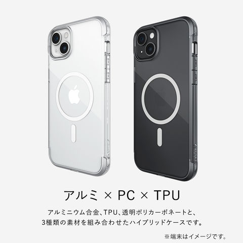 アルミニウム合金、TPU、透明ポリカーボネートと、3種類の素材を組み合わせたハイブリッドケースです。