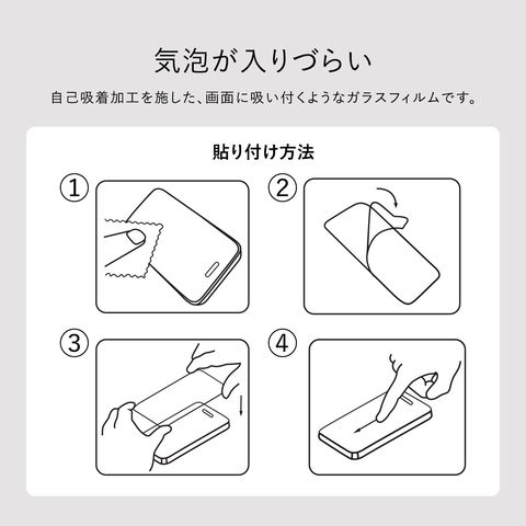 自己吸着加工を施した、画面に吸い付くようなガラスフィルムです。