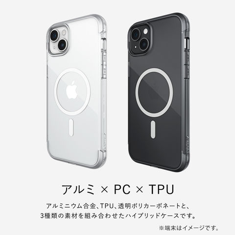 アルミニウム合金、TPU、透明ポリカーボネートと、3種類の素材を組み合わせたハイブリッドケースです。