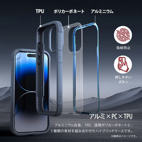 アルミニウム合金、TPU、透明ポリカーボネートと、3種類の素材を組み合わせたハイブリッドケースです。