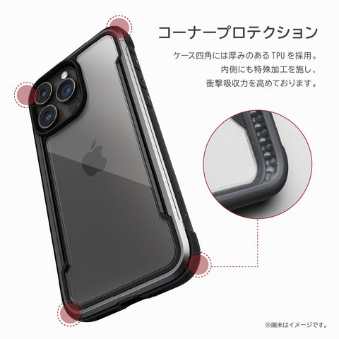 ケース四角には厚みのあるTPUを採用。内側にも特殊加工を施し、衝撃吸収力を高めております。