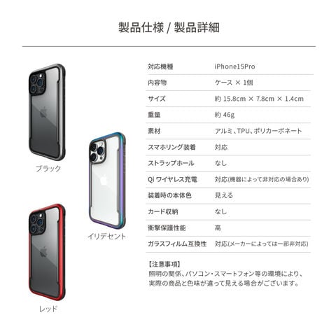 iPhone15Pro ケース 耐衝撃 米軍MIL規格 クリア 衝撃吸収 薄型 クリアケース Apple iPhone15 Pro アイフォン15 プロ アイフォン15 プラス 対応 RAPTIC Shield
