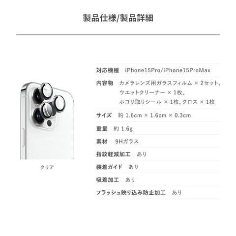 iPhone15Pro / iPhone15ProMax カメラ保護フィルム 指紋 傷 防止 カメラ保護 アップル アイフォン15プロ / アイフォン15プロマックス 対応 RAPTIC Armour