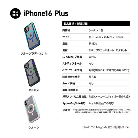 iPhone 16 Plus ケース クリア 耐衝撃 米軍MIL規格 スマホケース グラデーション フレーム 透明 スマホカバー iPhone16Plus 対応 RAPTIC Shield 2.0 MagSafe
