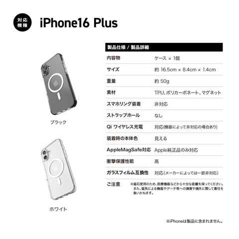 iPhone 16 Plus ケース MagSafe 対応 耐衝撃 クリア カバー 背面 ハード 透明 マグセーフ スマホケース iPhone16Plus 対応 RAPTIC Clear MagSafe