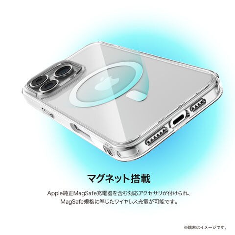 Apple純正MagSafe充電器を含む対応アクセサリが付けられ、MagSafe規格に準じたワイヤレス充電が可能です。