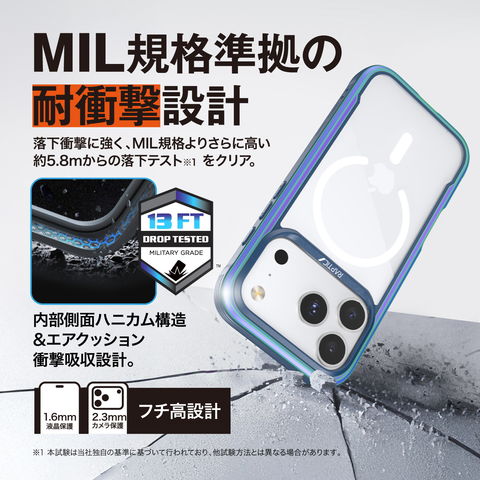MIL規格を超える約5.8mの高さからの独自落下試験をクリア。落下による衝撃や破損から、しっかり守ります。