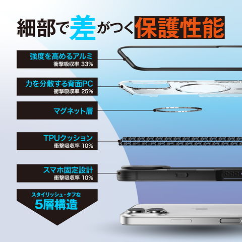 アルミ合金、TPU、ポリカーボネート、マグネット
