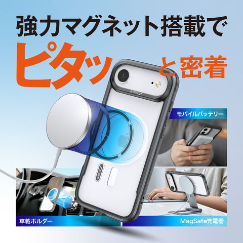 強力なネオジムマグネットを搭載。MagSafe対応アクセサリが付けられ、規格に準じたワイヤレス充電が可能です。
