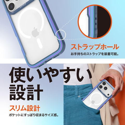 スタイリッシュでタフなアルミ合金、優れた耐久性のポリカーボネート、衝撃に強いTPUを組み合わせたハイブリッドケースです。