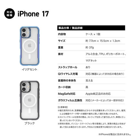 iPhone 17 ケース MagSafe 対応 耐衝撃 クリア スマホケース ハイブリッド 保護 マグセーフ 透明 携帯ケース iPhone17 アイフォン17 対応 RAPTIC Shield Classic