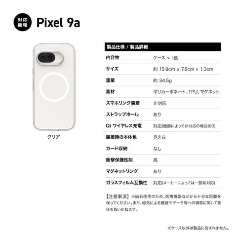 Pixel 9a ケース マグネット 付き 耐衝撃 米軍 MIL規格 クリア 耐衝撃ケース 透明 スマホケース Google Pixel9a ピクセル9a 対応 RAPTIC Air Clear M