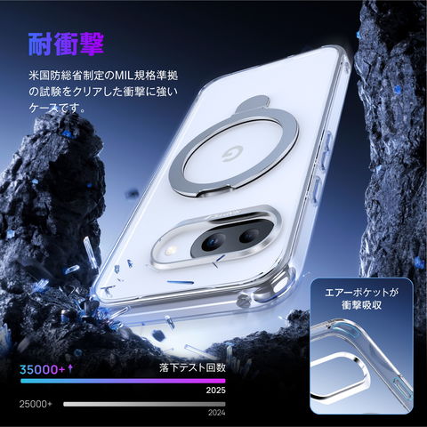 Pixel 9a ケース マグネット 付き 耐衝撃 MIL規格 クリア 耐衝撃ケース ストラップホール 付 スマホケース Google Pixel9a ピクセル9a 対応 RAPTIC Air Stand M