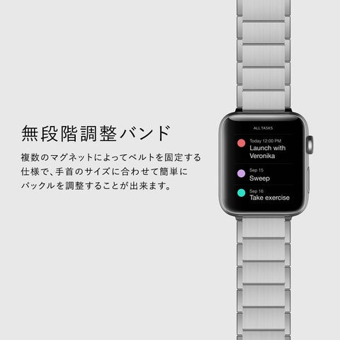 高品質で耐久性に優れたステンレススチールを採用し、手首へのフィット感が抜群です。