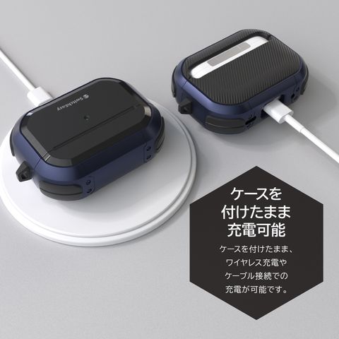 ケースを付けたまま、ワイヤレス充電やケーブル接続での充電が可能です。