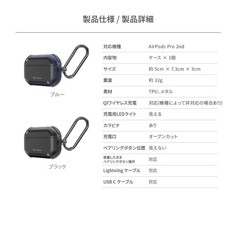 AirPods Pro2 ケース カラビナ 付 耐衝撃 落下防止 側面 ハードケース Apple AirPods Pro 2 エアポッツプロ2 MQD83J/A MTJV3J/A 対応 SwitchEasy Defender