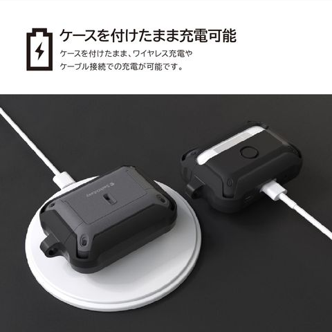 ケースを付けたまま、ワイヤレス充電やケーブル接続での充電が可能です。