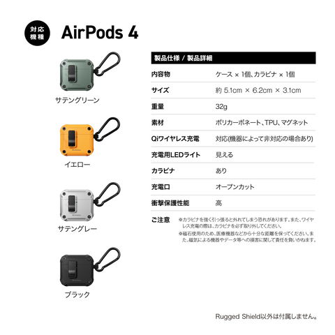 AirPods 4 ケース 耐衝撃 落下防止 カラビナ 付 カバー ロック 機能 ワイヤレス充電 MagSafe 対応 AirPods4 エアポッツ 4 第4世代 SwitchEasy Rugged Shield
