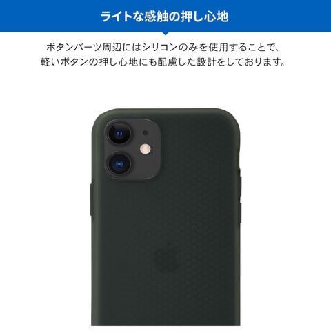 硬いケースをベースにしていますが、ボタン周りやライトニングポート周りには、柔らかいシリコン素材のみでカバーしているため、ボタンが押しやすく、ケーブル端子を接続しやすくしています。