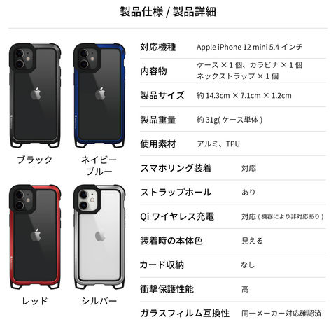 iPhone12mini ケース ショルダー ストラップ 付き 耐衝撃 クリア アルミ 衝撃 吸収 薄型 透明 カバー [ iPhone 12 mini アイフォン12ミニ ] SwitchEasy Odyssey