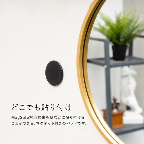 MagSafe対応端末を壁などに貼り付けることができる、マグネット付きのパッドです。