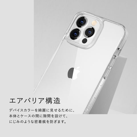 iPhoneカラーを綺麗に見せるために、本体とケースの間に0.6mmの空間を設けて、ケースが貼りついてしまうような密着痕を防止します。