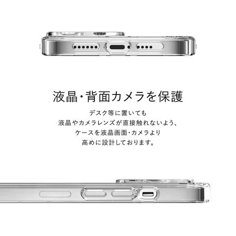 ケース正面は液晶面よりわずかに高く設計されておりますので、デスク等に置いても画面が直接触れることがなく、液晶へのすり傷等を防止します。