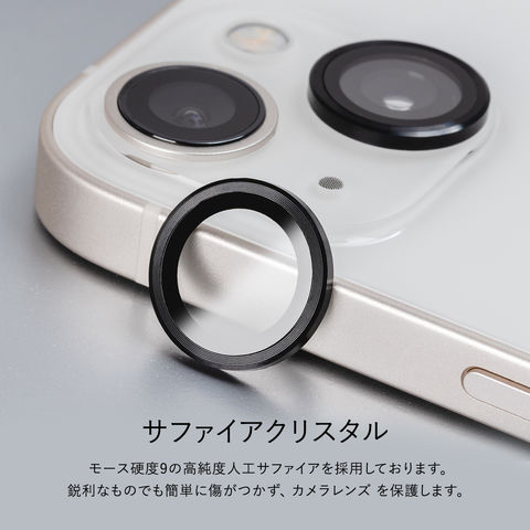 モース硬度9の高純度人工サファイアを採用しております。鋭利なものでも簡単に傷がつかず、カメラレンズを保護します。