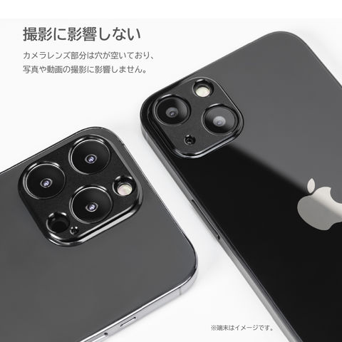 カメラレンズ部分は穴が空いており、写真や動画の撮影に影響しません。