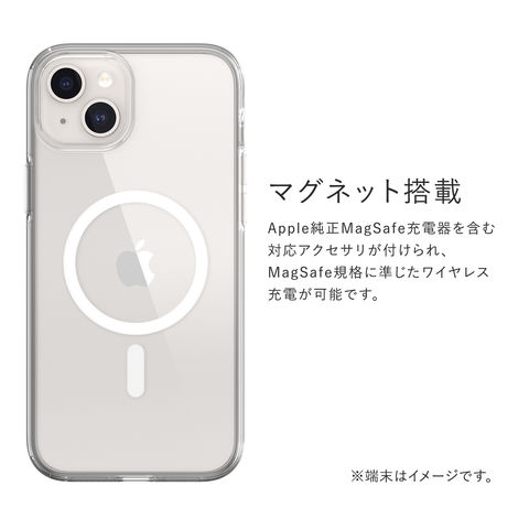 Apple純正MagSafe充電器を含む対応アクセサリが付けられ、MagSafe規格に準じたワイヤレス充電が可能です。