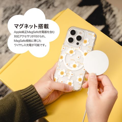 Apple純正MagSafe充電器を含む対応アクセサリが付けられ、MagSafe規格に準じたワイヤレス充電が可能です。