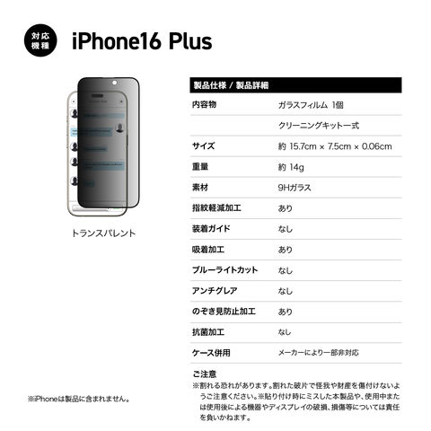 iPhone 16 Plus ガラスフィルム 覗き見防止 9H 強化ガラス 気泡防止 フィルム 指紋防止 プライバシー 保護フィルム iPhone16Plus 対応 SwitchEasy Glass Privacy