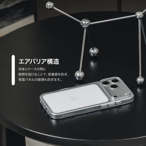 本体とケースの間に隙間を設けることで、密着痕を防ぎ、背面パネルの破損も防ぎます。