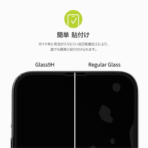 ガイド枠と気泡が入りにくい自己吸着加工により、誰でも簡単に貼り付けられます。