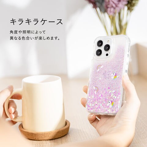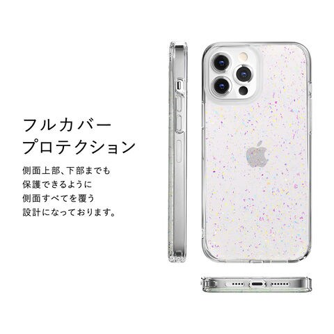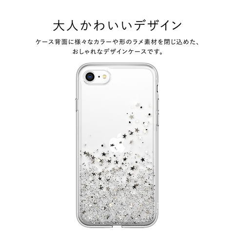 ケース背面に様々なカラーや形のラメ素材を閉じ込めた、おしゃれなデザインケースです。