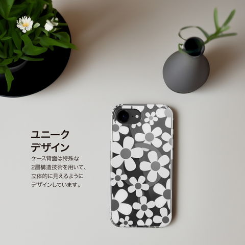 iPhone 16e ケース 花柄 クリア オシャレ 可愛い マグネット リング 付き スマホケース 花 かわいい カバー iPhone16e アイフォン16 e 対応 SwitchEasy Fleur M