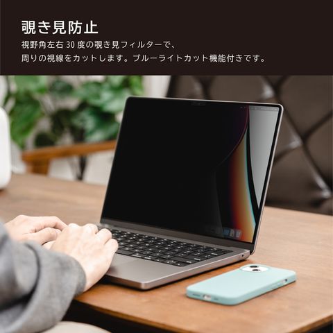 視野角左右30度の覗き見フィルターで、周りの視線をカットします。ブルーライトカット機能付きです。