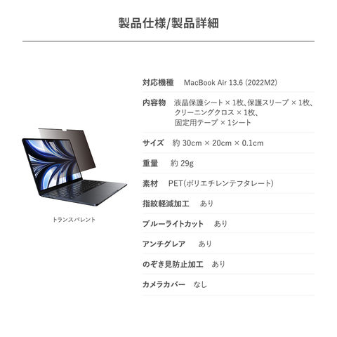 MacBook Air M4 M3 M2 フィルム のぞき見防止 アンチグレア ブルーライトカット 着脱式 MacBookAir 13.6インチ 2025 2024 2022 対応 SwitchEasy EasyProtector
