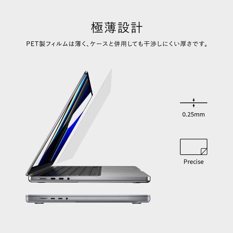 PET製フィルムは薄く、ケースと併用しても干渉しにくい厚さです。