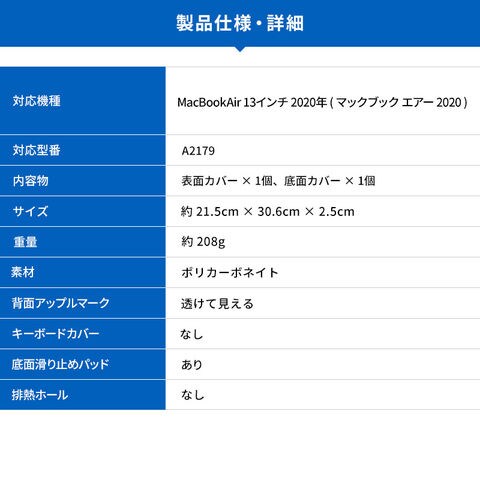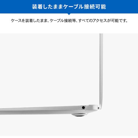 約1.4mm厚の高品質ポリカーボネイトを使用した、MacBook Airのデザインを損なわないフルカバーハードケースです。