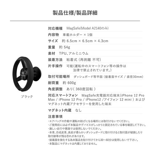 MagSafe充電器を簡単に取り付けることができ、MagSafe対応端末はワンタッチで固定できます。