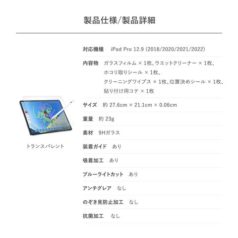 iPad Pro 12.9 2018 2020 2021 2022 ブルーライトカット フィルム 9H 強化ガラス クリア 保護ガラス Apple iPadPro12.9 対応 SwitchEasy Glass Defenderのレビュー