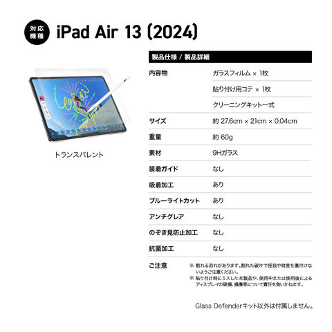 iPad Air 13インチ M3 2025 M2 ブルーライトカット フィルム 9H 指紋防止 クリア 保護ガラス iPadAir アイパッドエアー 13 2024 対応 SwitchEasy Glass Defender