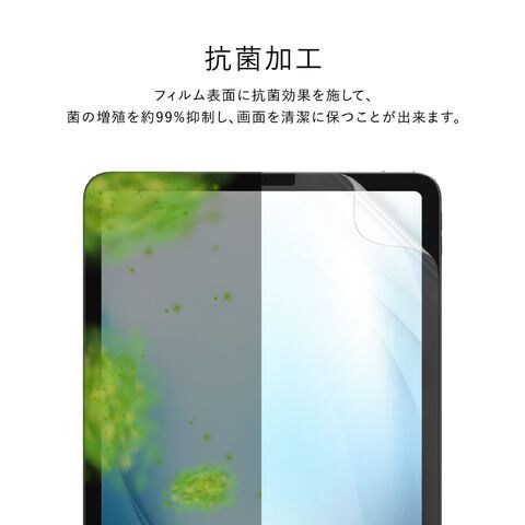 フィルム表面に抗菌効果を施して、菌の増殖を約99%抑制し、画面を清潔に保つことが出来ます。