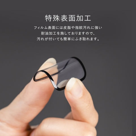 フィルム表面には皮脂や指紋汚れに強い耐油加工を施しておりますので、汚れが付いても簡単にふき取れます。
