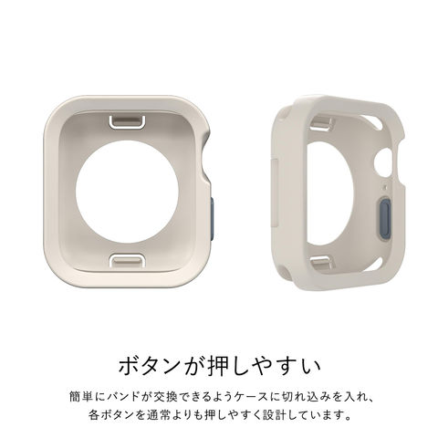 簡単にバンドが交換できるようケースに切れ込みを入れ、各ボタンを通常よりも押しやすく設計しています。