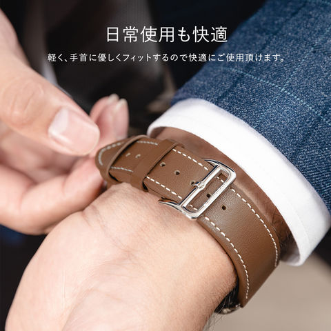 厳選された高品質の本革を使用し、高級感と温かみをもたらすバンドです。