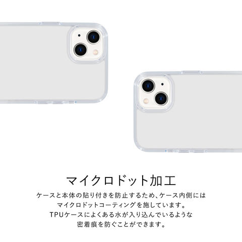ケースと本体の貼り付きを防止するため、ケース内側にはマイクロドットコーティングを施しています。TPUケースによくある水が入り込んでいるような密着痕を防ぐことができます。